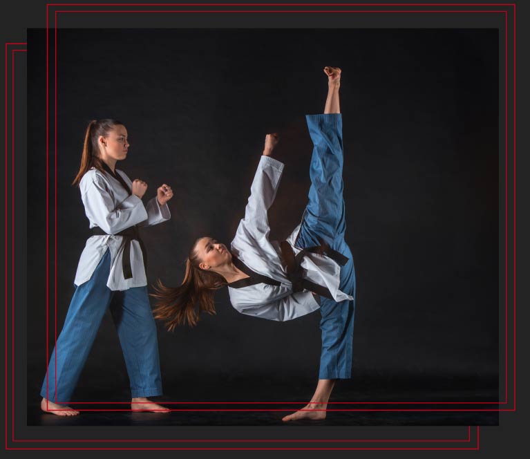 Para jóvenes y adultos, el taekwondo es un entrenamiento muy completo que trabaja fuerza, potencia, movilidad y velocidad. Las técnicas de pierna —patadas frontales, laterales, circulares y giros— fortalecen el tren inferior, mientras que las defensas y desplazamientos mejoran la agilidad y la precisión. Además, el entrenamiento continuo favorece la pérdida de grasa, incrementa la resistencia cardiovascular y mejora notablemente la condición física general.